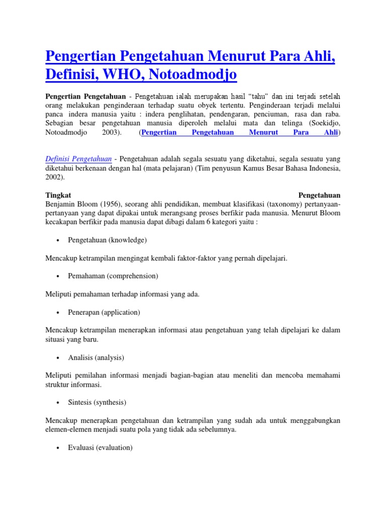 Pengertian Definisi Pengetahuan Menurut Para Ahli Beserta Tingkatannya Weschool Id