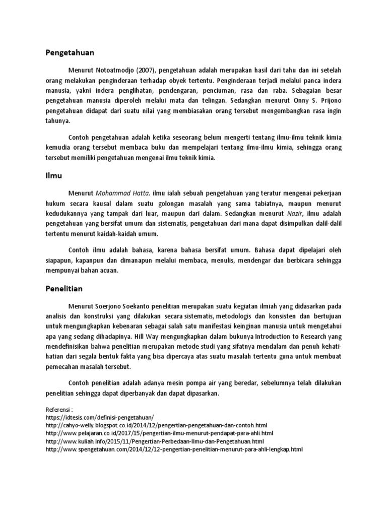 Pengertian Ilmu Pengetahuan Menurut Para Ahli Pdf Terkait Ilmu