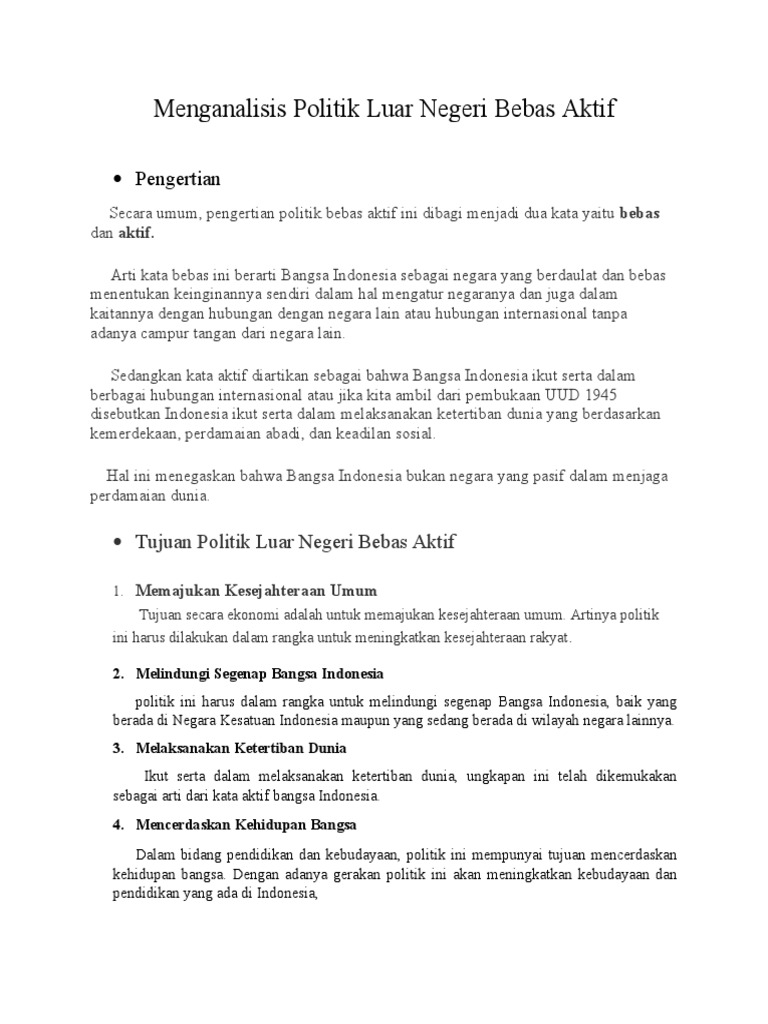 1 Apa Yang Kamu Ketahui Tentang Politik Luar Negeri 2 Jelaskan Pengertian Politik Luar Negeri Bebas Aktif 3 Sebutkan Tujuan Politik