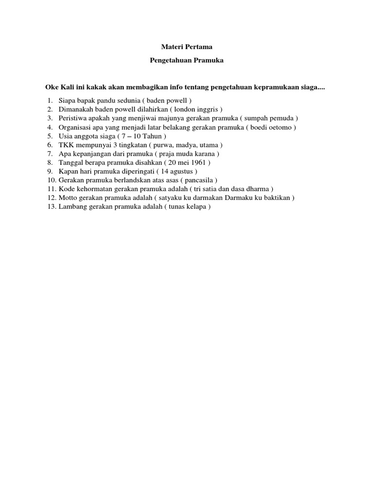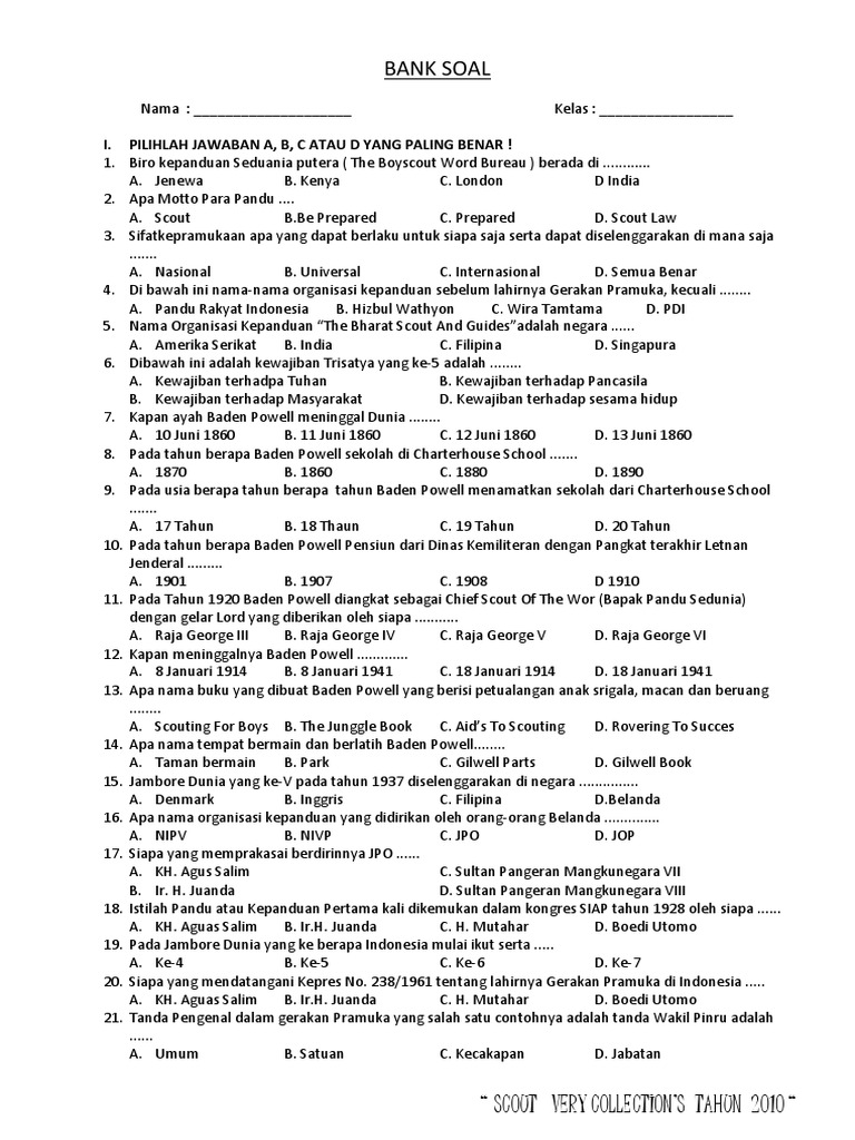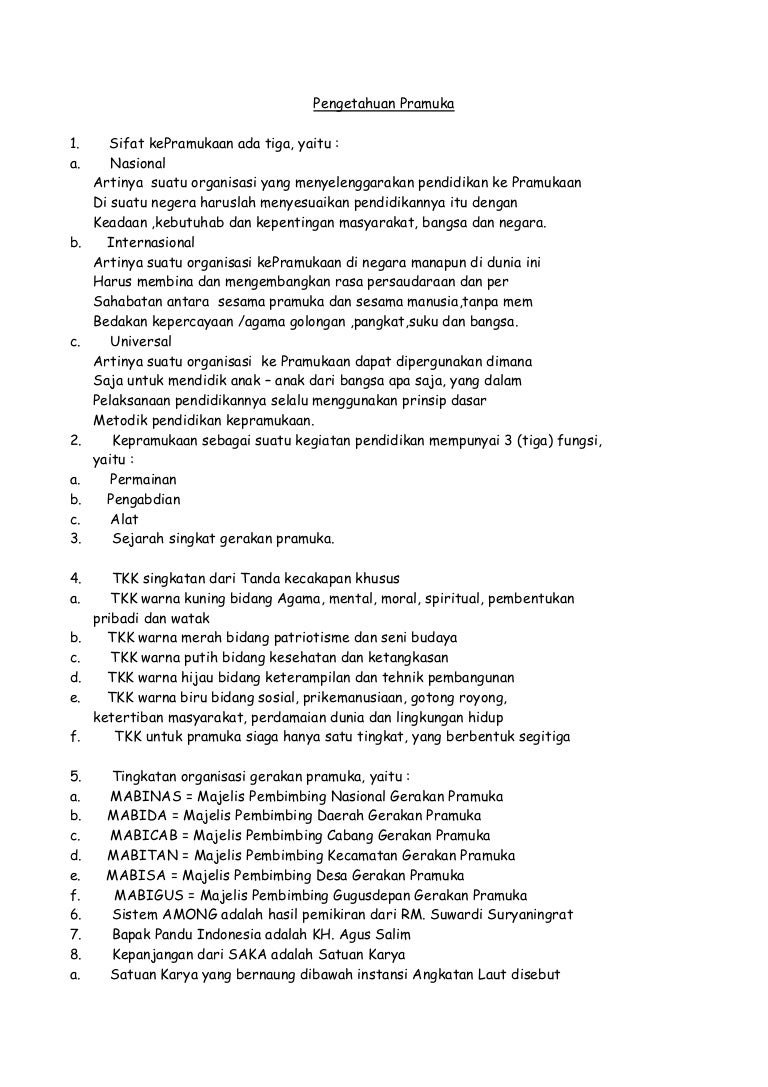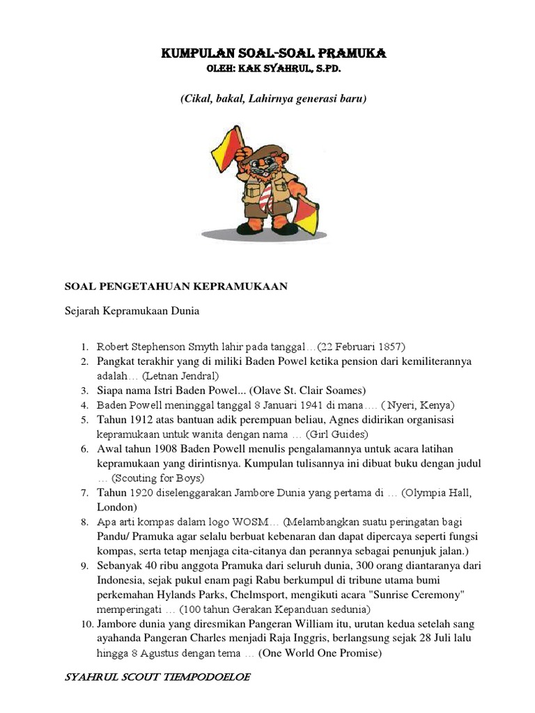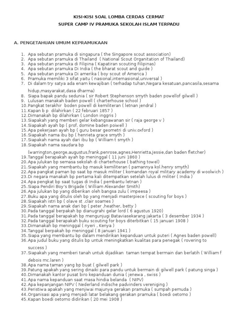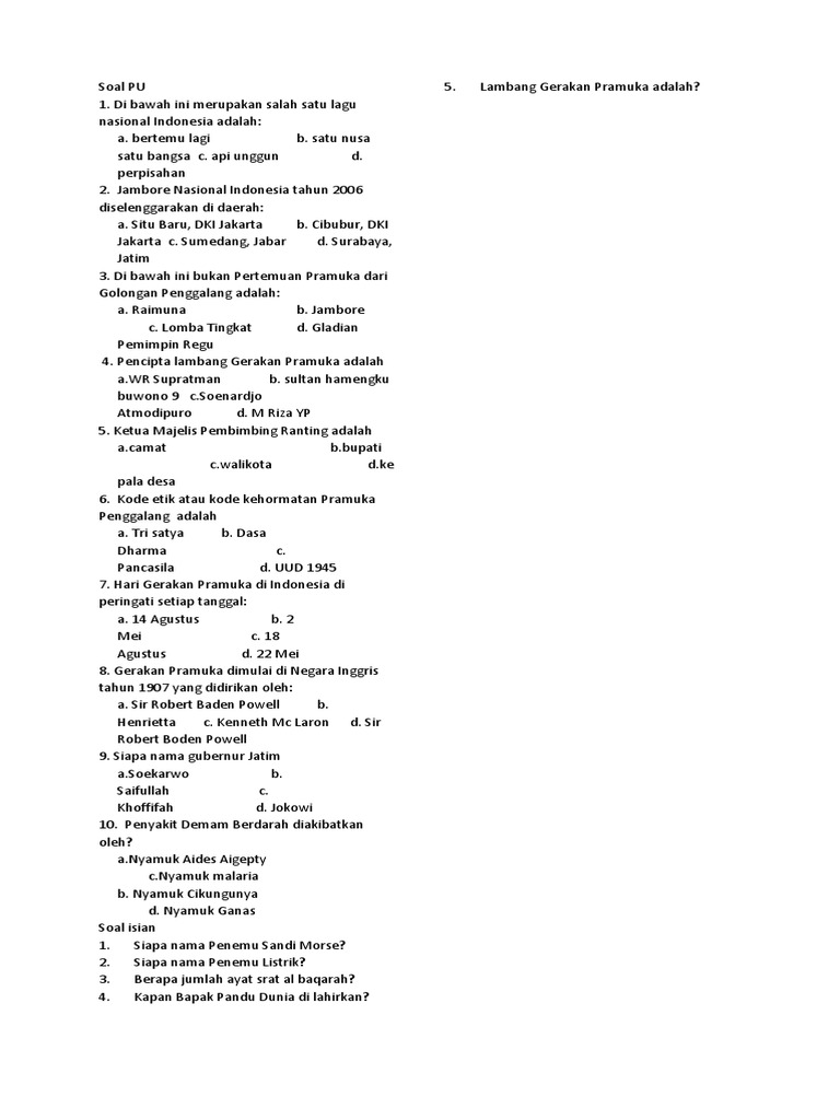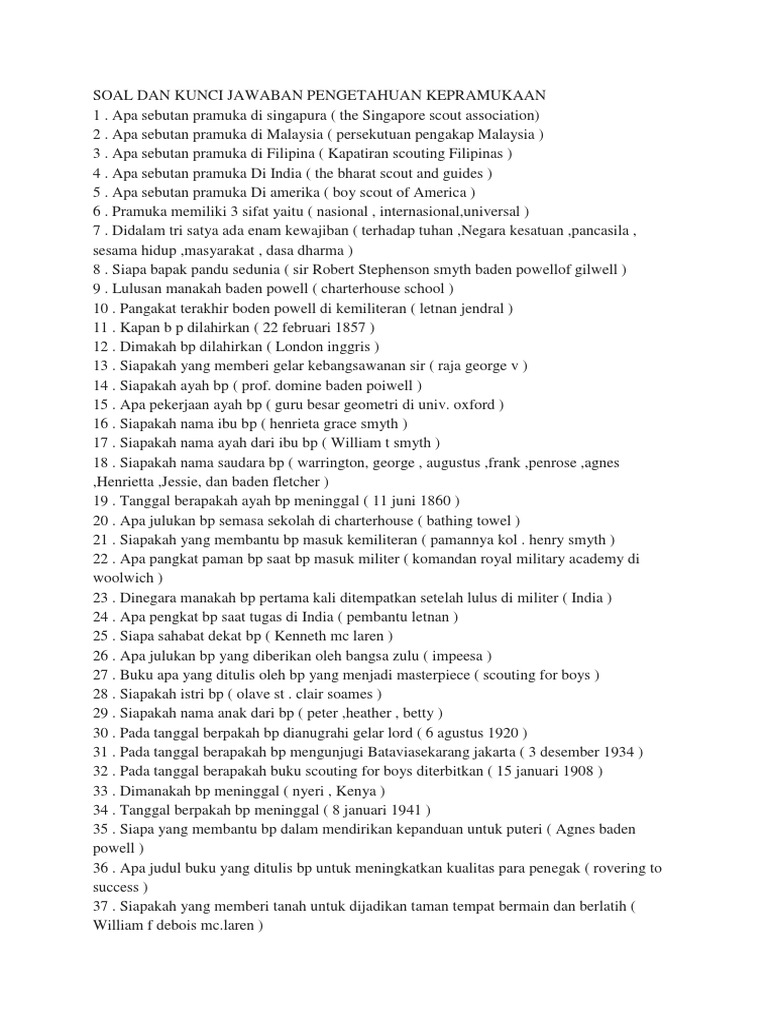 Doc Kumpulan Soal Pengetahuan Umum Kepramukaan Lengkap Jawaban Farhan Hidayat Academia Edu