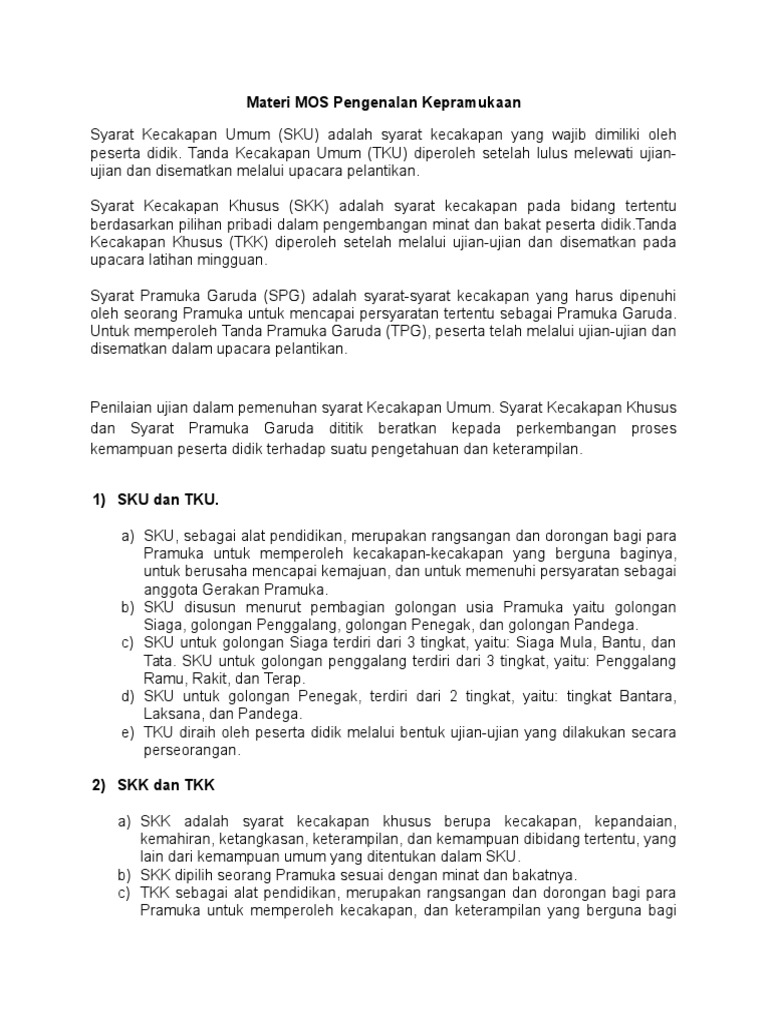 Keputusan Kwartir Nasional Gerakan Pramuka Nomor 058 Tahun 1982 Tentang Petunjuk Penyelenggaraan Tanda Kecakapan Umum Pdf Free Download