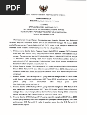 Pengumuman Peserta Seleksi Cpns Kategori P1 Tl