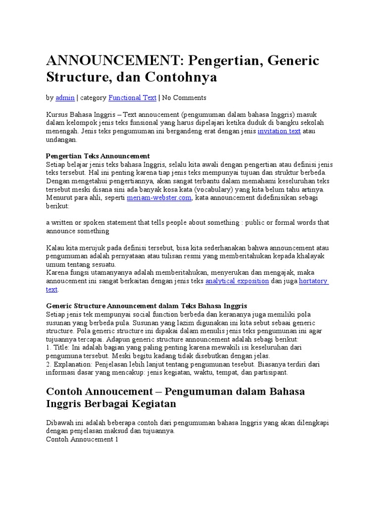 Announcement Text Pengertian Ciri Macam Jenis Struktur