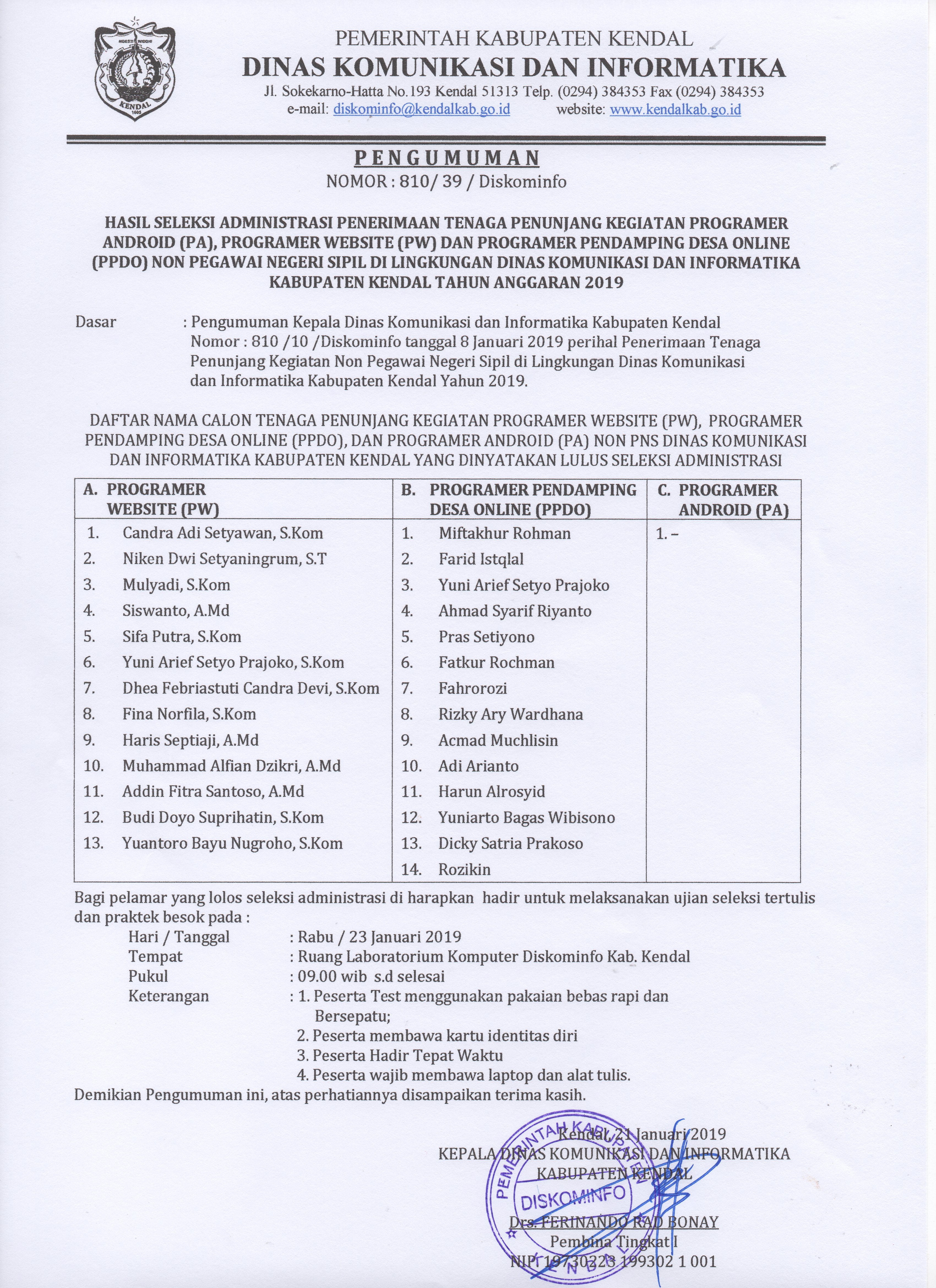 Pengumuman Hasil Seleksi Tenaga Pendamping Desa Tahun 2019 Website Pemerintah Kabupaten Penajam Paser Utara