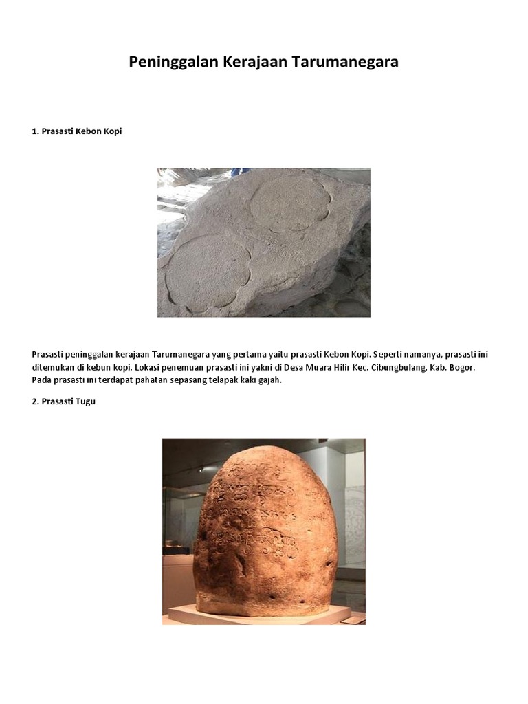 Kerajaan Tarumanegara Peninggalan Sejarah Prasasti Letak Raja