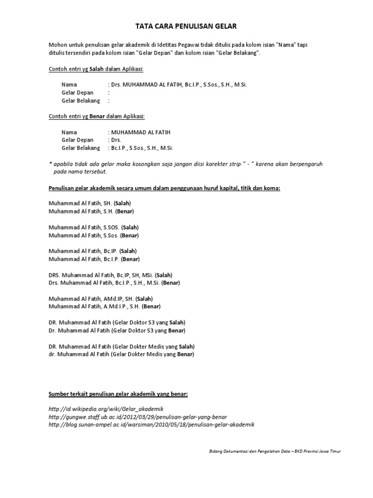 Contoh Penulisan Nama Gelar Aneka Macam Contoh