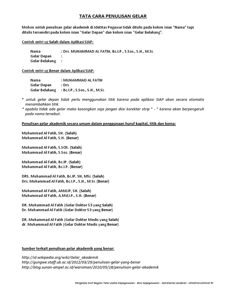 Cara Penulisan Gelar Yang Benar Siswapedia