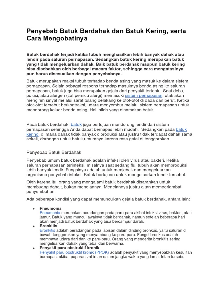 19 Penyebab Batuk Kering Berdarah Berdahak Dan Berkepanjangan Diadona Id