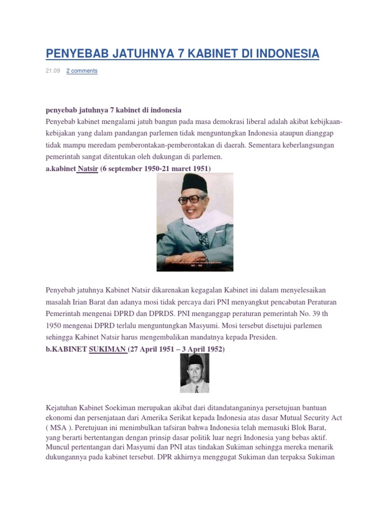 Penyebab Jatuhnya 7 Kabinet Di Indonesia Karw21anto