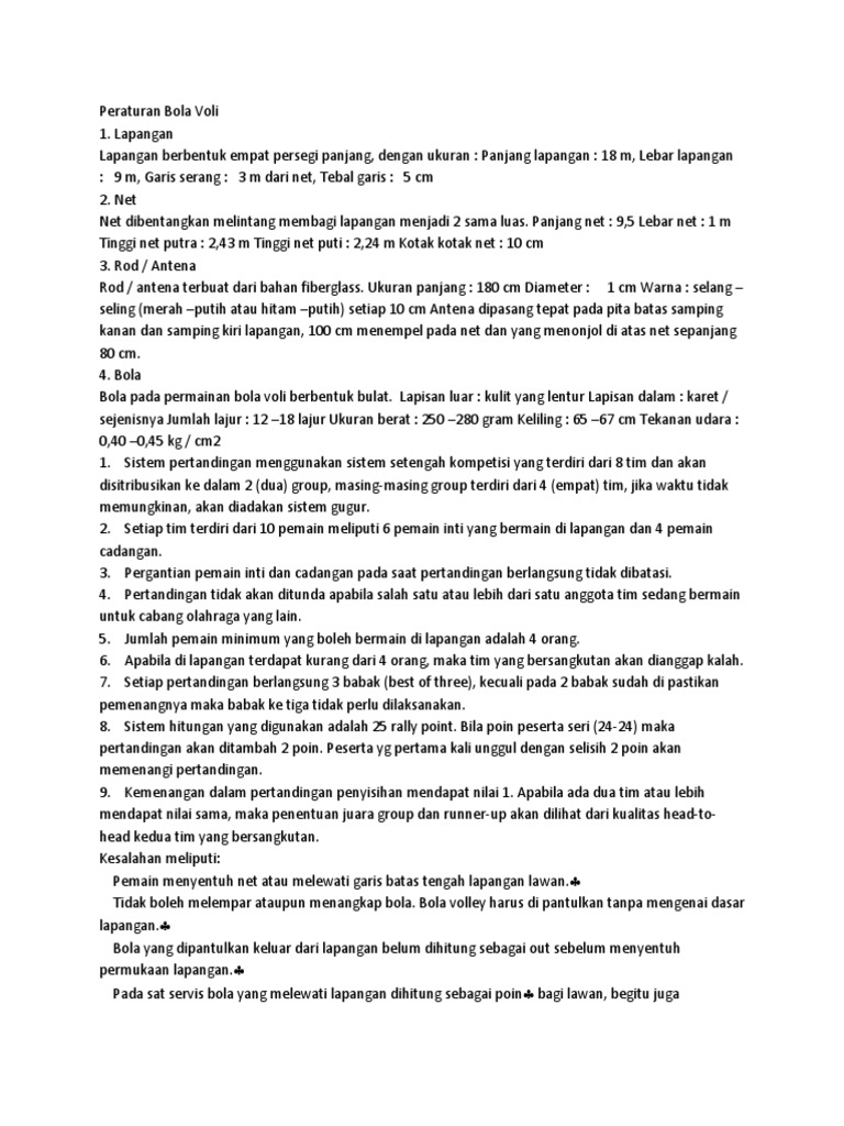 20 Peraturan Permainan Bola Voli Terbaru Standar Internasional Fivb Pdf Txt