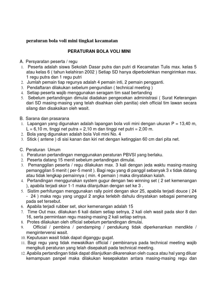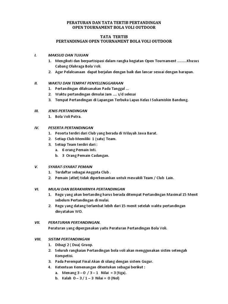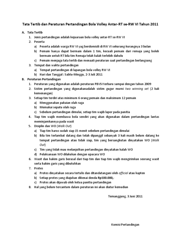 Peraturan Turnamen Exibition Bola Volley Plastik Taman Permata Indah Taman Permata Indah Rt 7 Rw 4