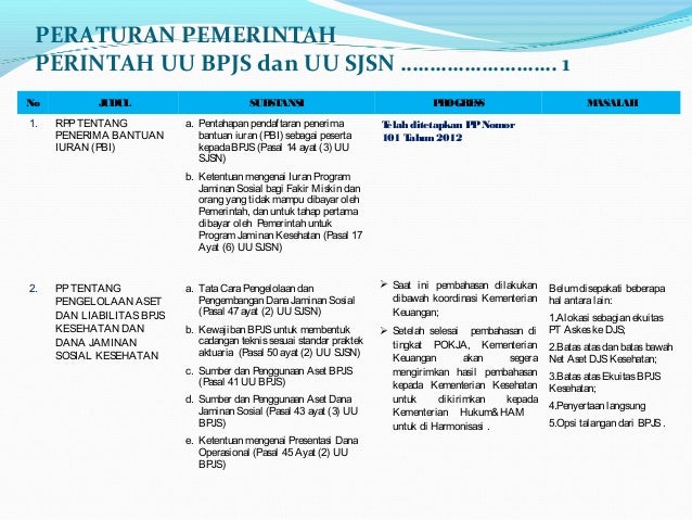 Pokja Regulasi Bpjs Kesehatan Peraturan Perundang Undangan Pelaksan
