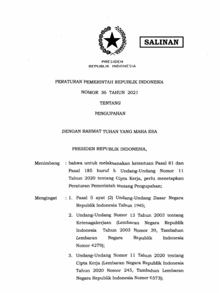 Pemerintah Terbitkan Pp Nomor 36 Tahun 2021 Tentang Pengupahan