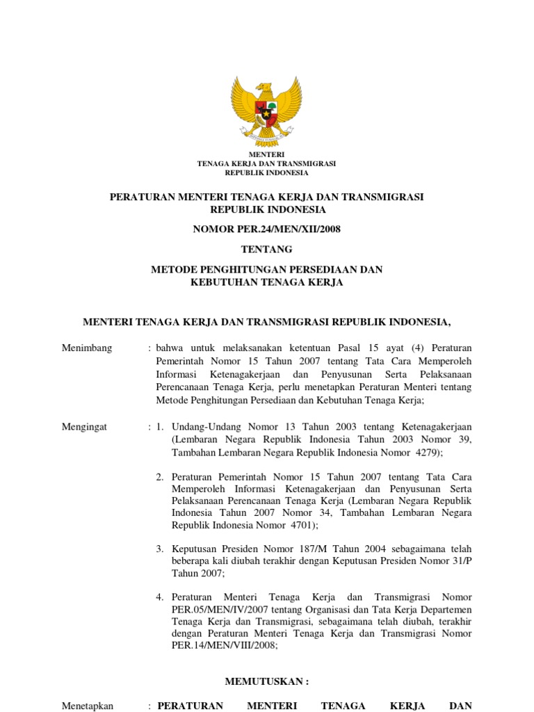 Peraturan Menteri Tenaga Kerja Dan Transmigrasi Republik Indonesia