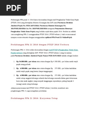 Peraturan Ptkp Terbaru Nomor 101 Pmk 010 2016 Talenta