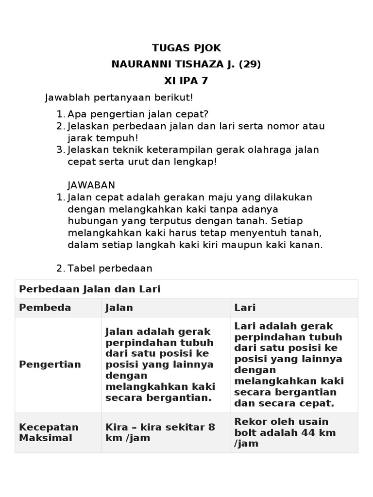 1 Jelaskan Perbedaan Antara Jalan Dan Lari Jawabannya
