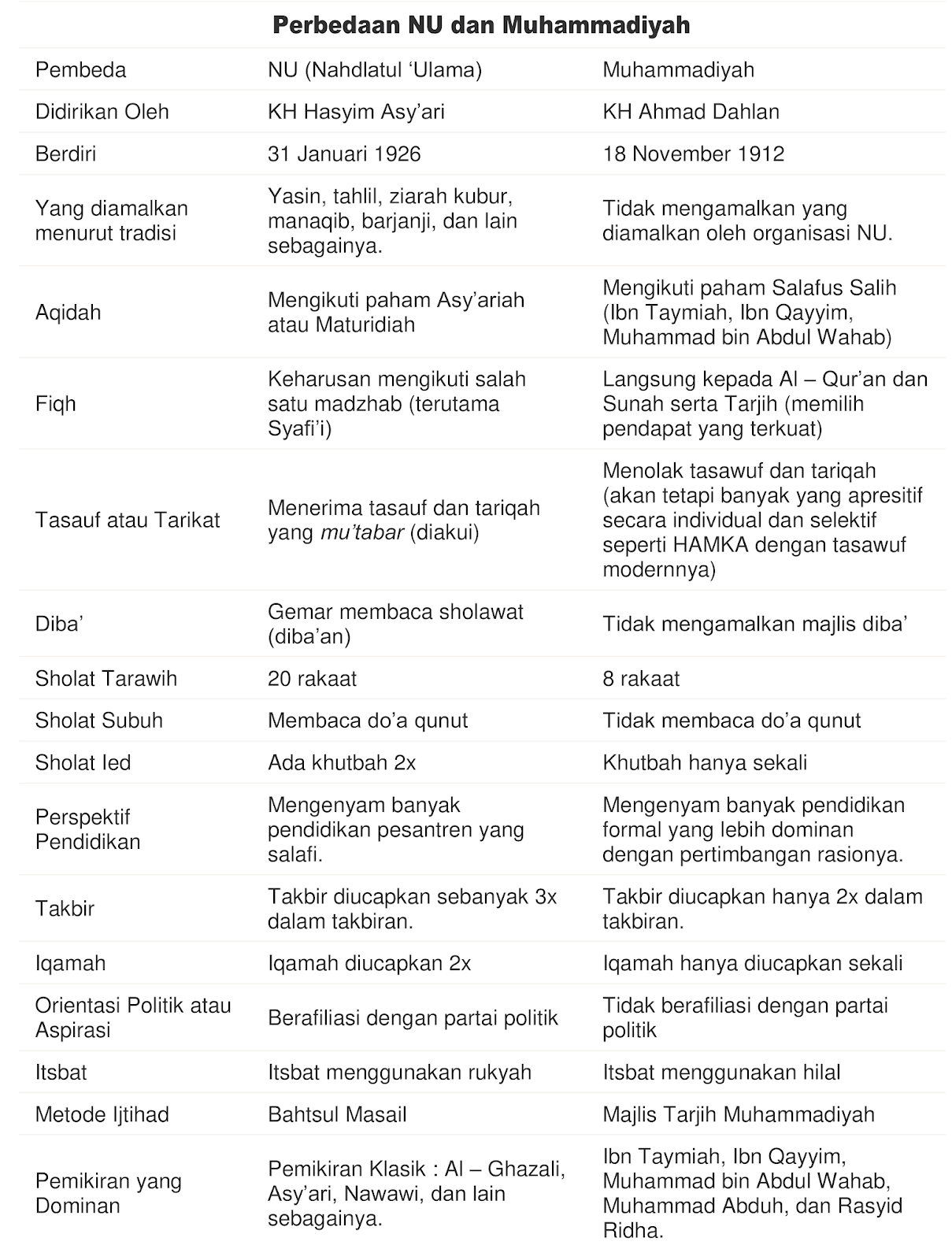 Perbedaan Nu Dan Muhammadiyah Kumpulan Berita Seputar Muhammadiyah