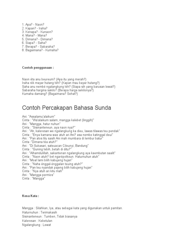 Kata Tanya Dalam Bahasa Sunda Beserta Contoh Kalimat Dan Artinya