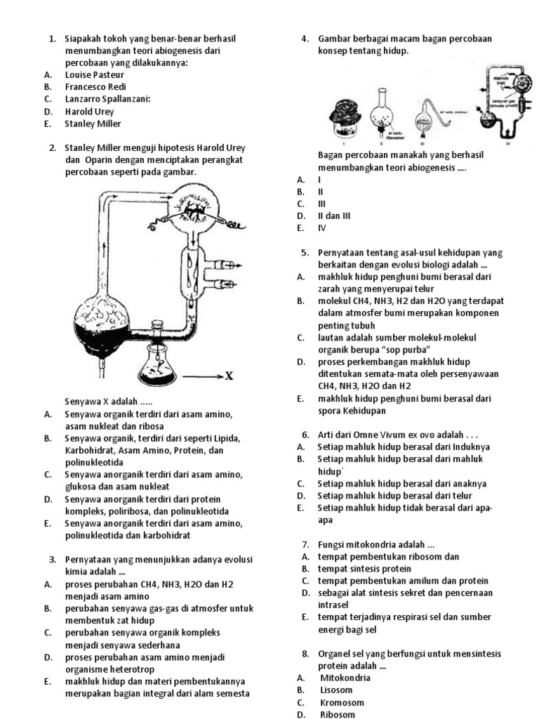 Stanley Miller Dan Harold Urey Menguji Hipotesis Oparin Bagian Perangkat Yang Ditunjuk Huruf X Mas Dayat