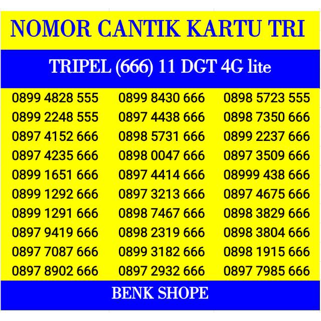 Nomor Kartu Perdana Tri 4g Lte Cantik Tripel 666 Shopee Indonesia