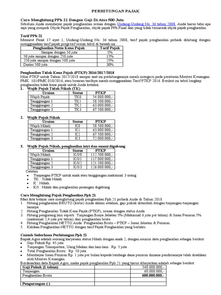 Cara Hitung Pajak Progresif Pph Pasal 21