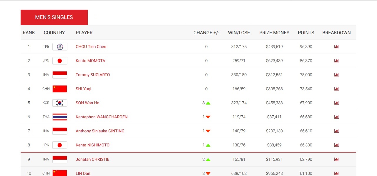 Daftar Peringkat Bulutangkis Dunia Bwf 2018 Teh Iis Blog