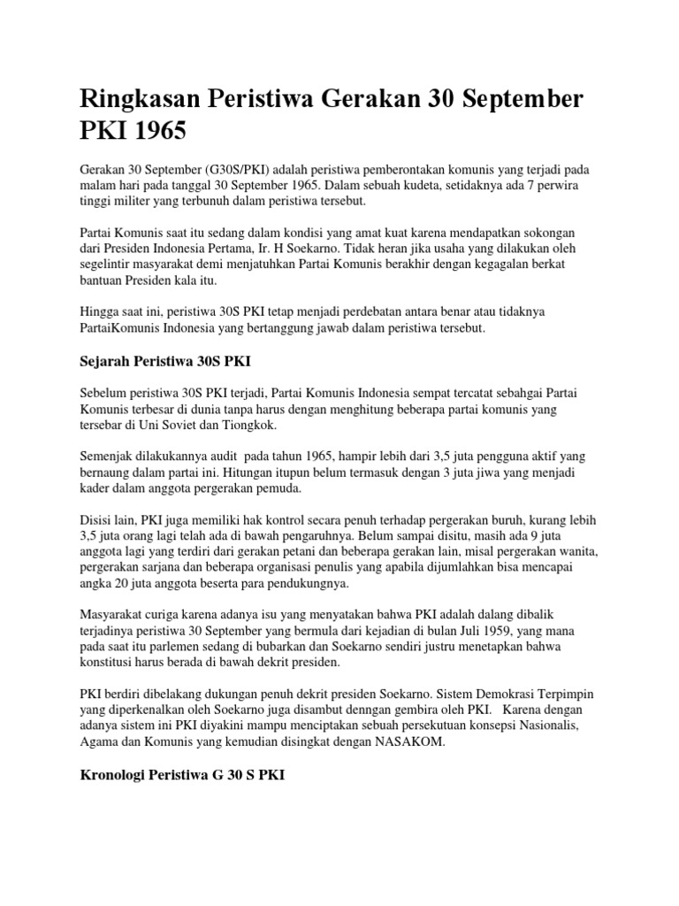Sejarah Gerakan 30 September Pki Website Desa Penyabangan