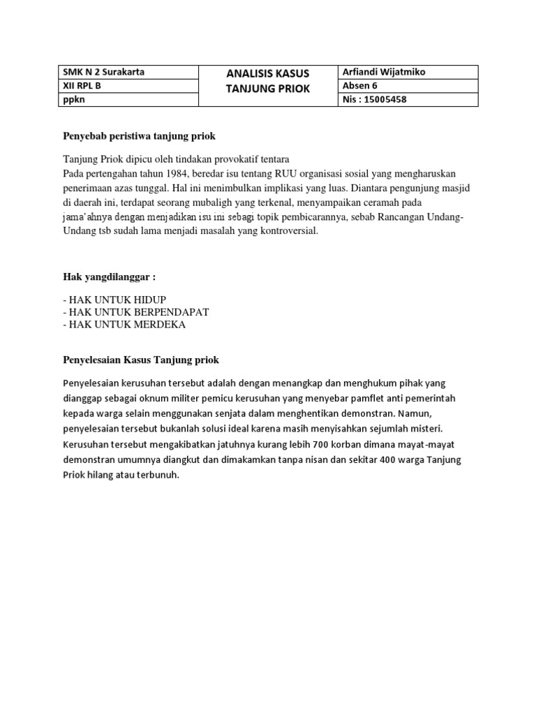 Jurnal Siswa Tragedi Tanjung Priuk 1984 Disusun Oleh Kelompok 2 Xi Ips 3 Sma Xaverius 1 Palembang