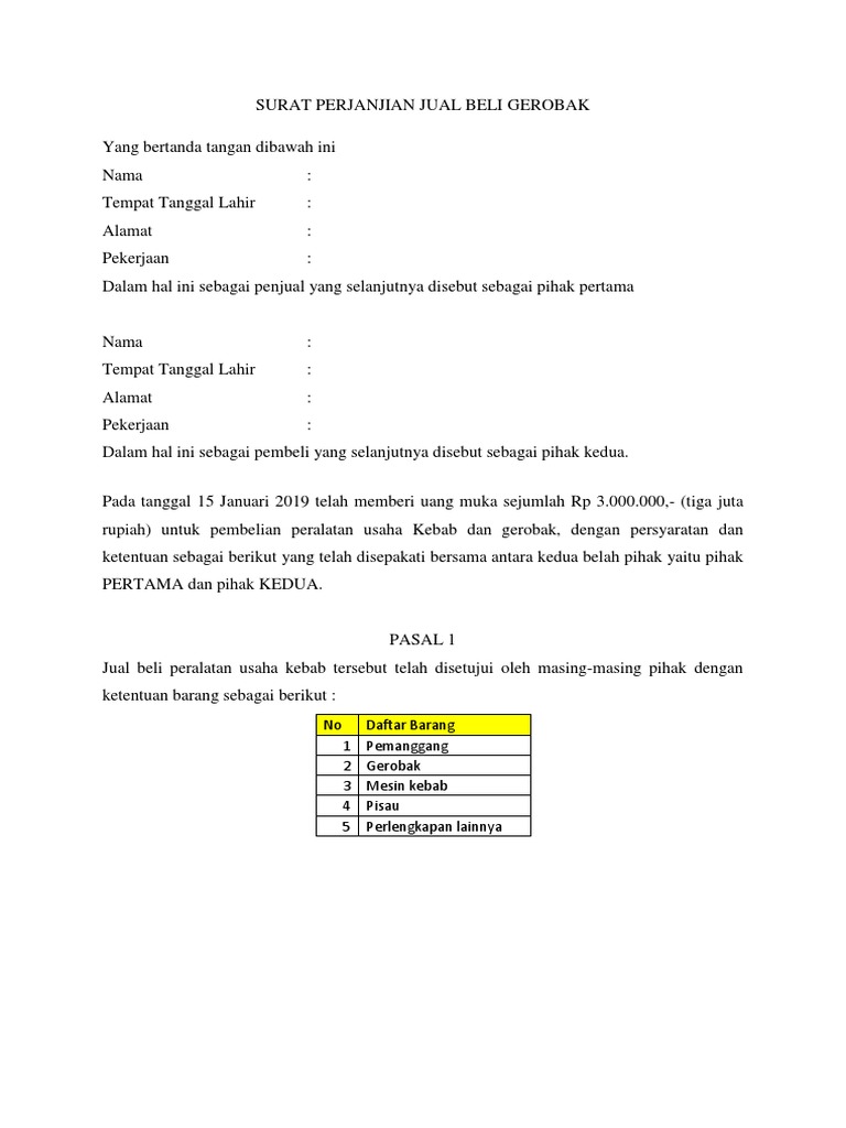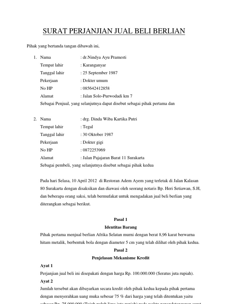Surat Perjanjian Jual Beli Panduan Lengkap Contoh Qoala Indonesia