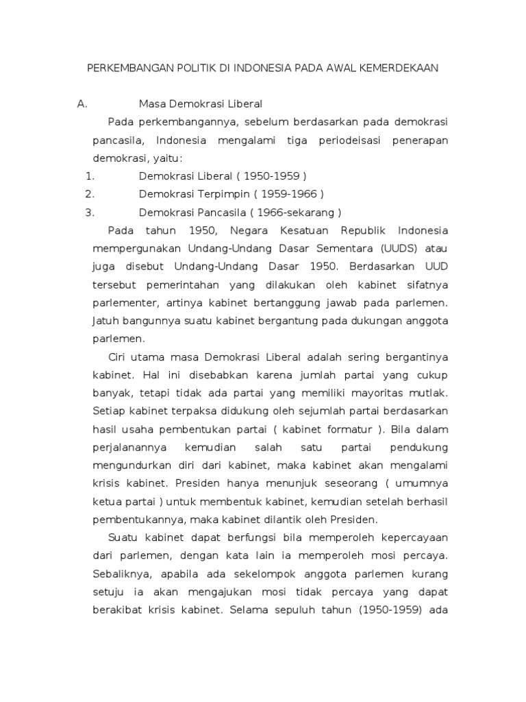 Perkembangan Politik Di Indonesia Pada Awal Docx Document