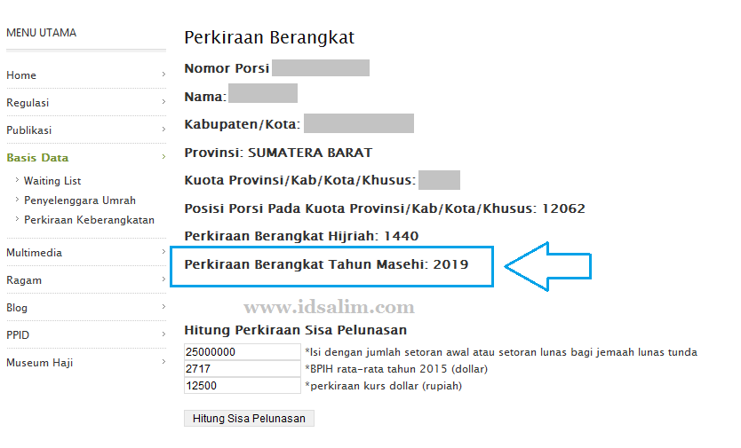 Cara Melihat Perkiraan Berangkat Haji Idsalim Com