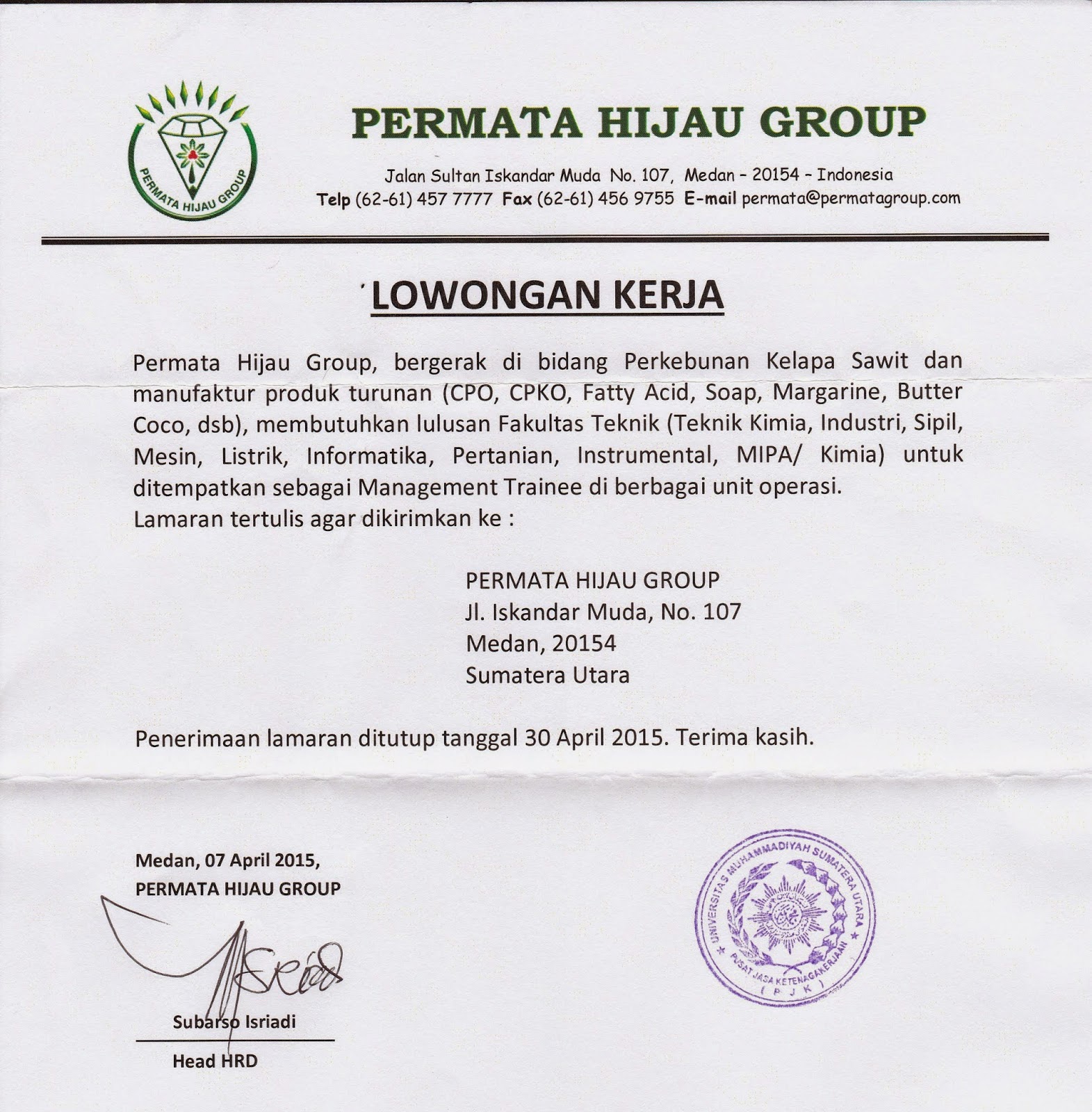 Loker Permata Hijau Group Medan Batas Waktu 25 Januari 2019 Cari Kerja Yuk
