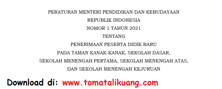 Download Permendikbud Ri Nomor 1 Tahun 2021 Tentang Ppdb Tk Sd Smp Sma Smk Pdf