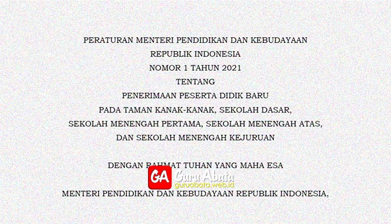 Juknis Ppdb 2021 2022 Menurut Permendikbud Nomor 1 Tahun 2021 Guru Abata