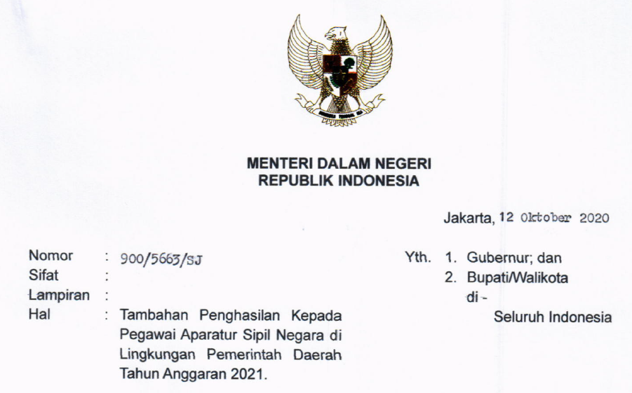 Ketentuan Tentang Tambahan Penghasilan Asn Di Lingkungan Pemerintah Daerah Tahun 2021 Berdasarkan Surat Edaran Menteri Dalam Negeri Nomor 900 5663 Sj Dadang Jsn