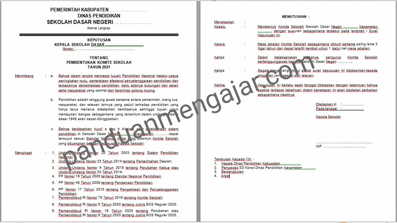 Contoh Sk Komite Sekolah Sd Tahun 2021