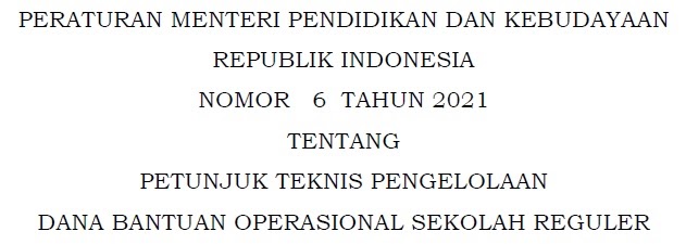 Permendikbud Nomor 6 Tahun 2021 Tentang Petunjuk Teknis Pengelolaan Dana Bantuan Operasional Sekolah Reguler Dadang Jsn