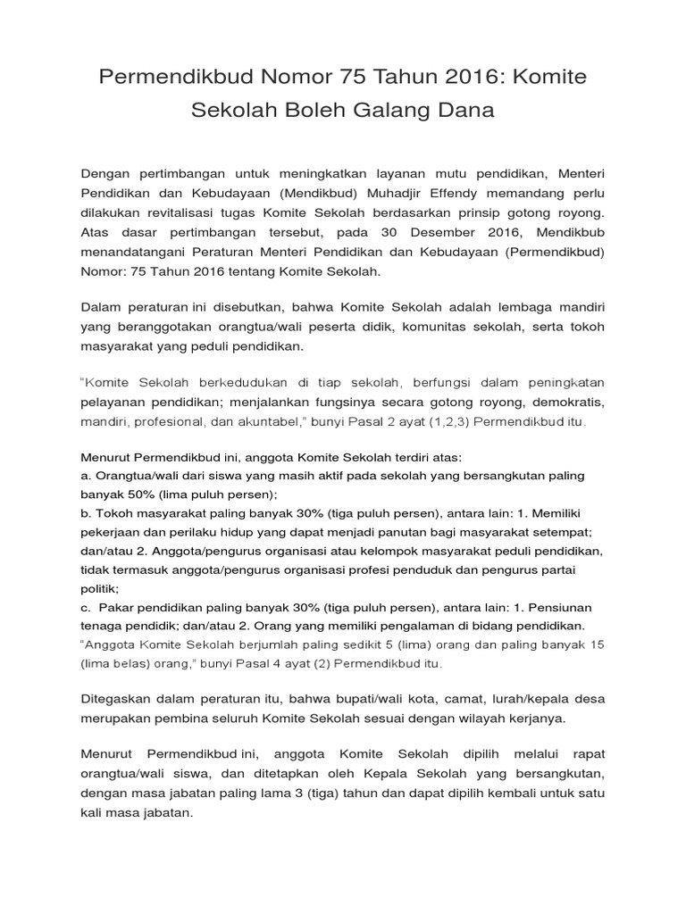Permendikbud No 75 Tahun 2020 Wacana Komite Sekolah Idn Paperplane
