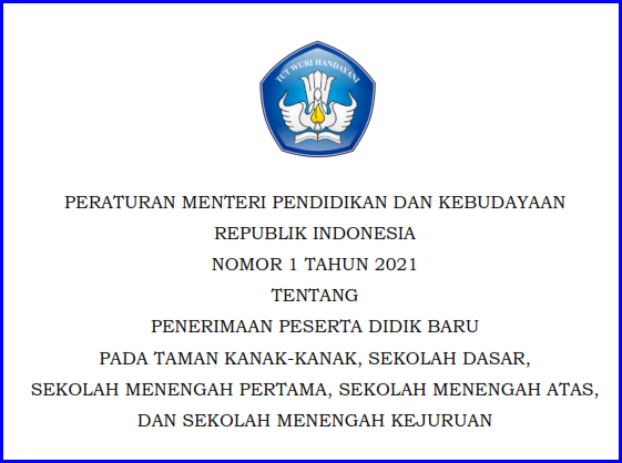 Permendikbud Nomor 1 Tahun 2021 Tentang Penerimaan Peserta Didik