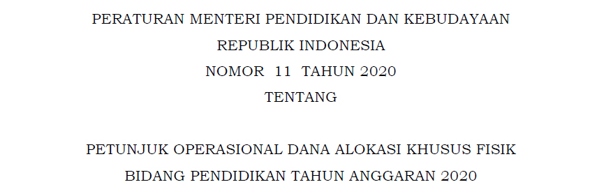 Permendikbud Nomor 11 Tahun 2020 Tentang Petunjuk Operasional Dak Fisik Pendidikan Tahun Anggaran 2020 Dadang Jsn