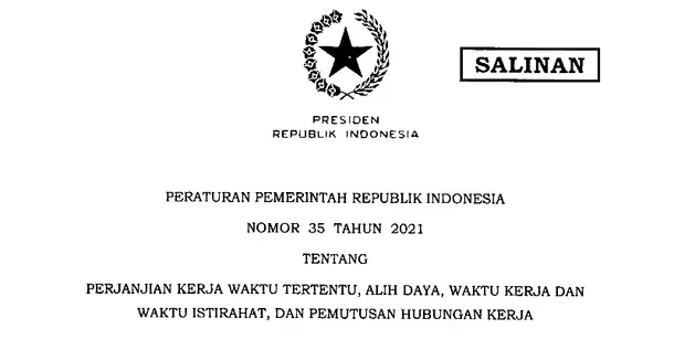 Pp Nomor 35 Tahun 2021 Tentang Perjanjian Kerja Waktu Tertentu Alih Daya Waktu Kerja Dan Waktu Istirahat Dan Phk Berkas Edukasi