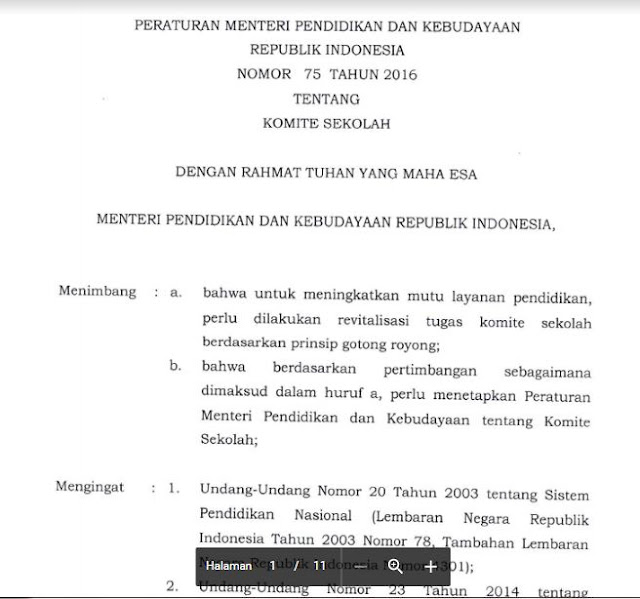 Permendikbud No 75 Tahun 2016 Tentang Komite Sekolah