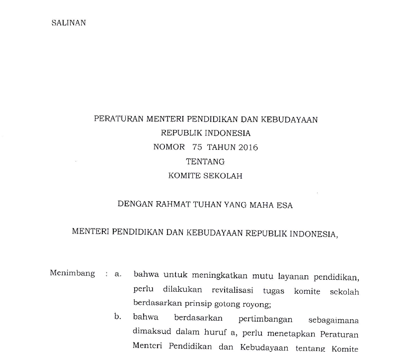 Permendikbud Nomor 75 Tahun 2016 Tentang Komite Sekolah