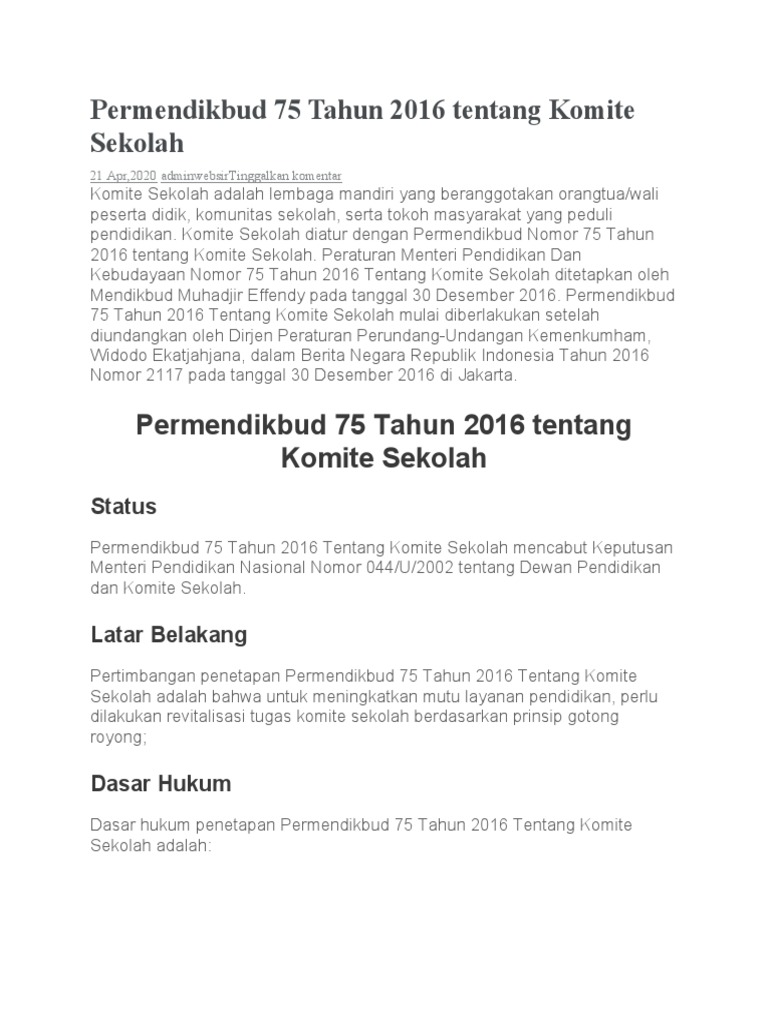 Permendikbud Nomor 75 Tahun 2016 Tentang Komite Sekolah Operatorsekolahdbn Com Informasi Pendidikan Indonesia