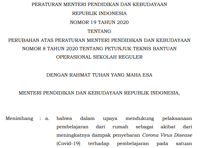 Permendikbud Nomor 8 Tahun 2020 Tentang Juknis Bos Tahun 2020 Operatorsekolahdbn Com Informasi Pendidikan Indonesia