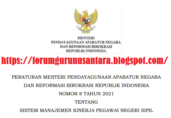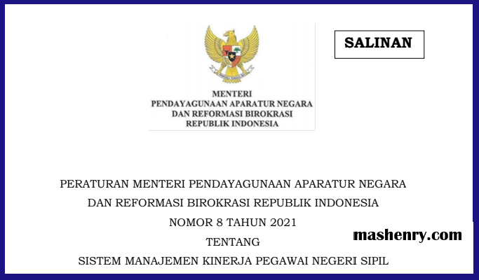 Download Permenpan Rb Nomor 8 Tahun 2021 Tentang Sistem Manajemen Kinerja Pegawai Negeri Sipil Juragan Desa