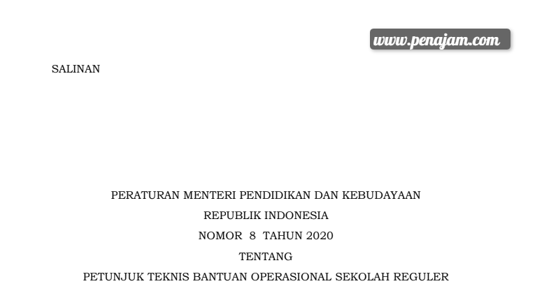 Permendikbud Nomor 8 Tahun 2020 Perihal Juknis Bos Reguler Tahun 2020 Untuk Sd Smp Sma Smk Idn Paperplane