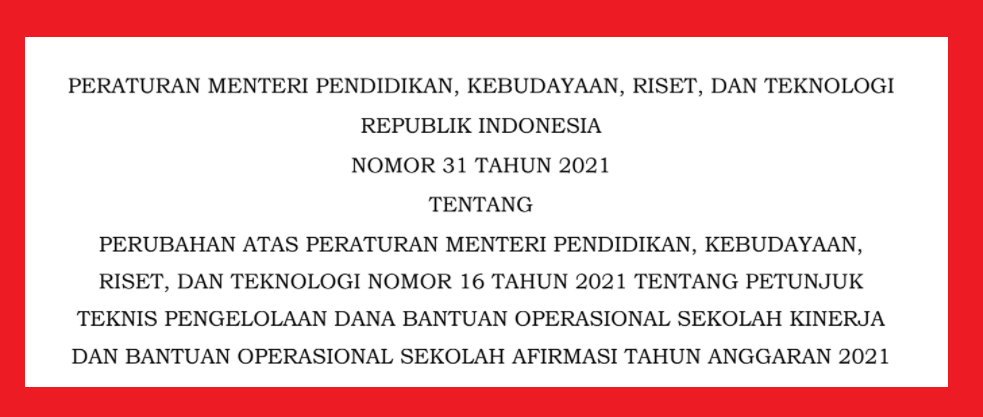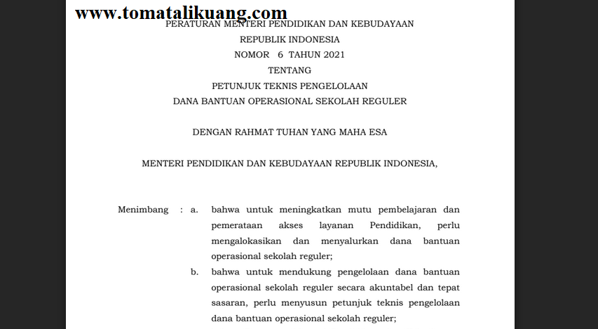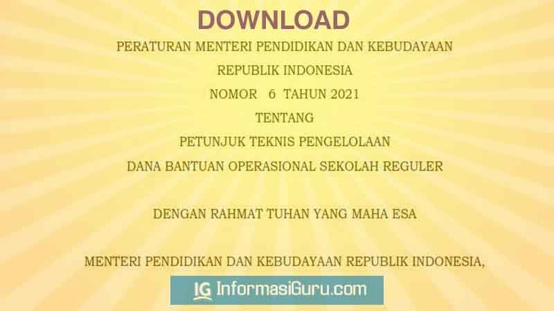 Permendikbud Nomor 6 Tahun 2021 Tentang Petunjuk Teknis Pengelolaan Dana Bantuan Operasional Sekolah Reguler