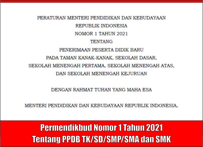Permendikbud Nomor 1 Tahun 2021 Tentang Ppdb Tk Sd Smp Sma Dan Smk Tahun Pelajaran 2021 2022