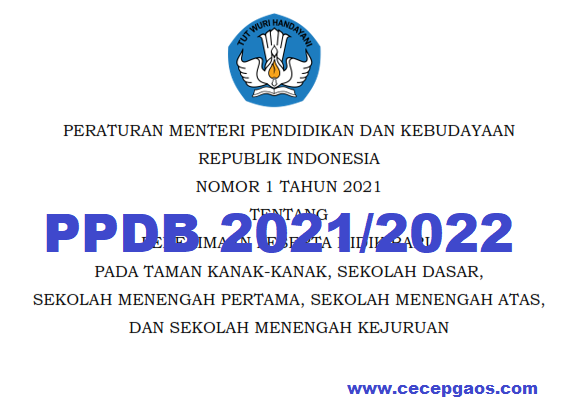 Inilah Permendikbud Nomor 1 Tahun 2021 Tentang Ppdb Pada Tk Sd Smp Sma Dan Smk Cecepgaos Com